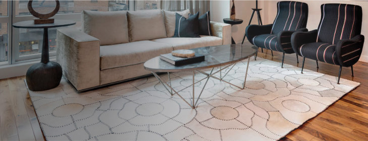Some size guides recommend that either all the furniture rests on the rug, or all the furniture, except for the coffee table, is placed completely off the rug. This will look fine, but one exception is the placement of the sofa. In our opinion, the front legs of a sofa can rest on the rug while the rest of the sofa is off the rug.